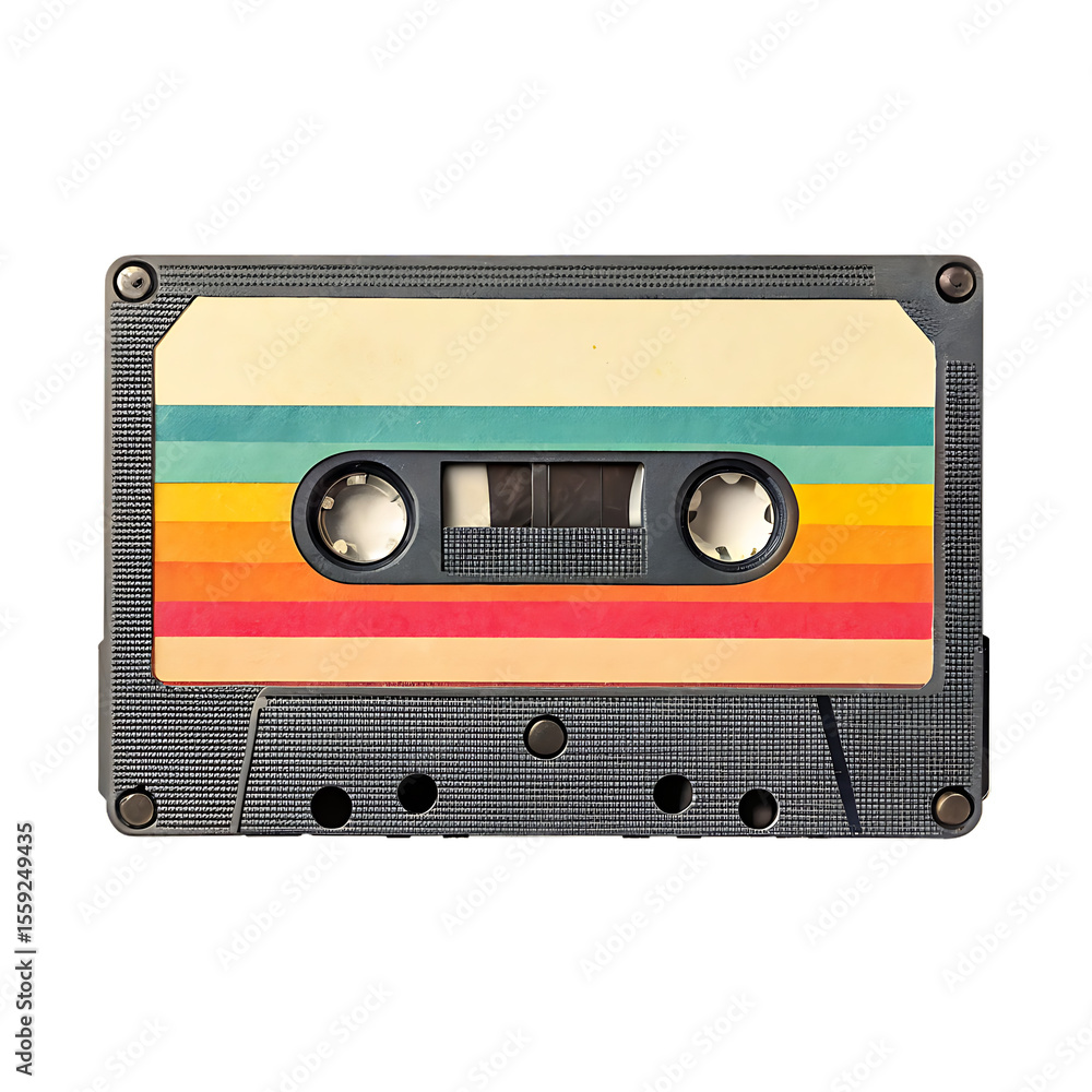 Retro cassette tape with colorful label isolated on a transparent background audio music #1559249435