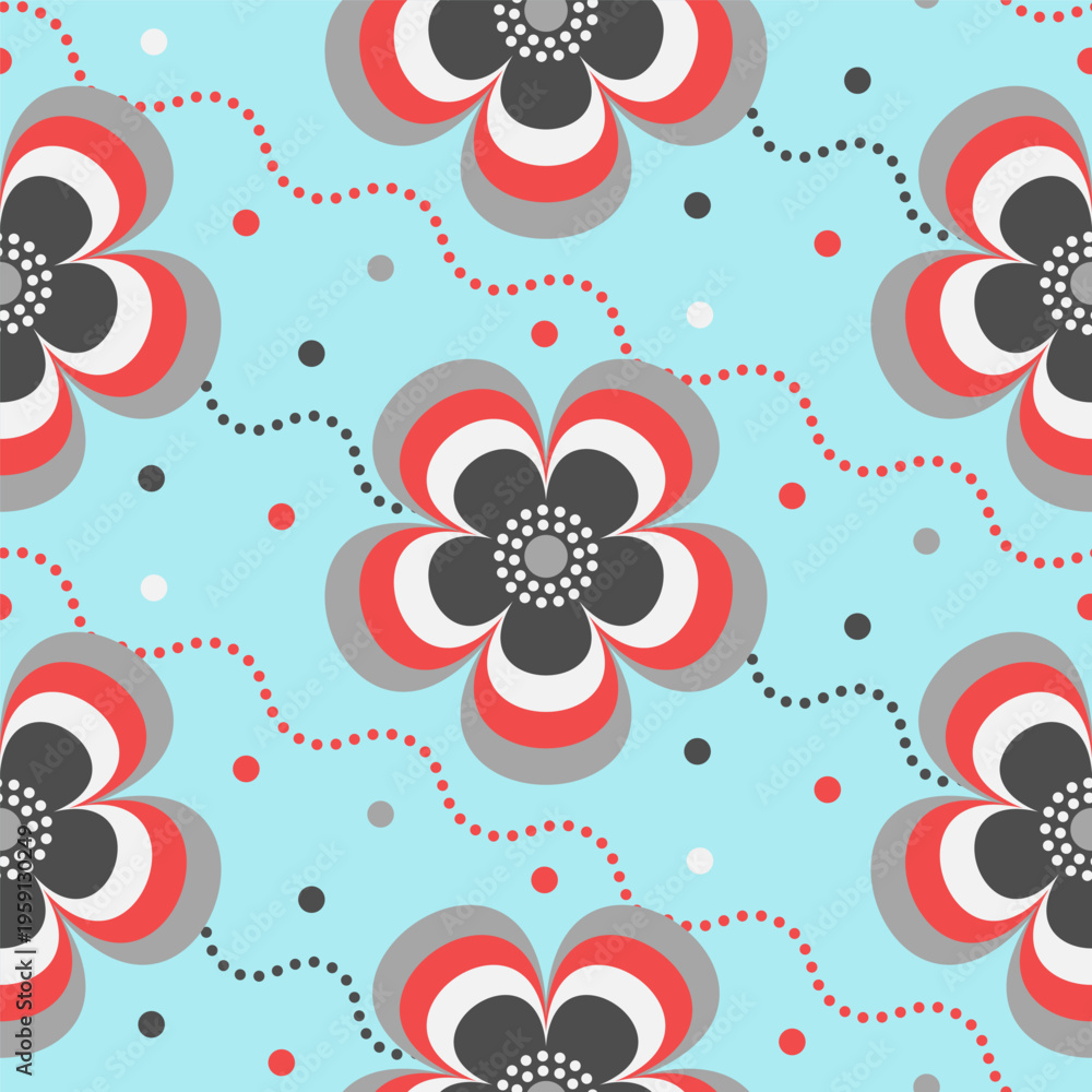 Retro floral Mid Century modern stylized flowers, 1970s mod seamless vector pattern illustration. For home decor, wallpapers, fabrics and textile. #1959130249