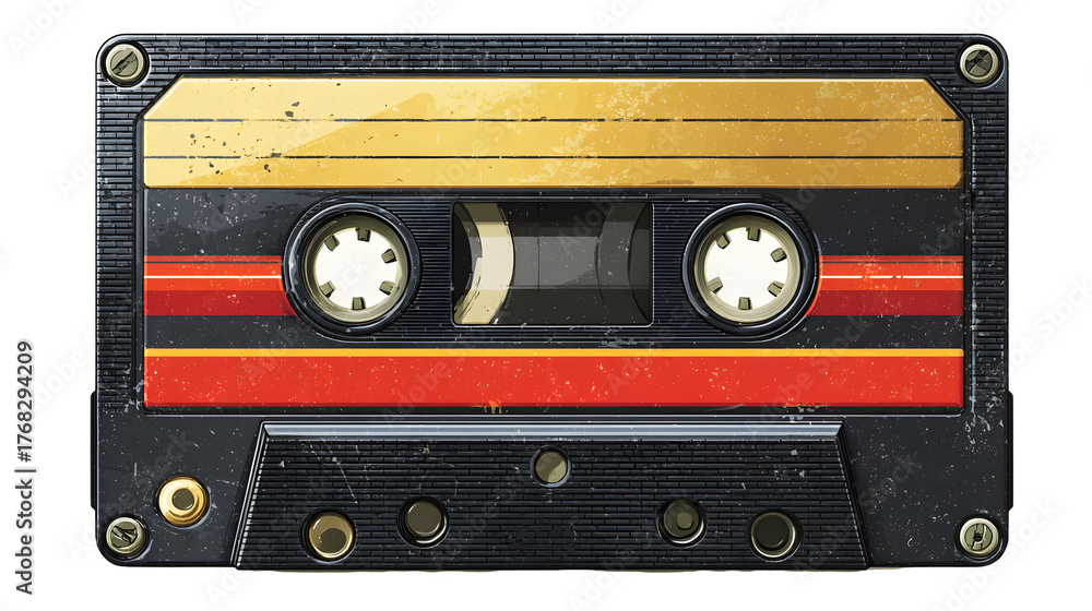 Retro music vibes: classic black cassette tape design for nostalgic themes #1768294209