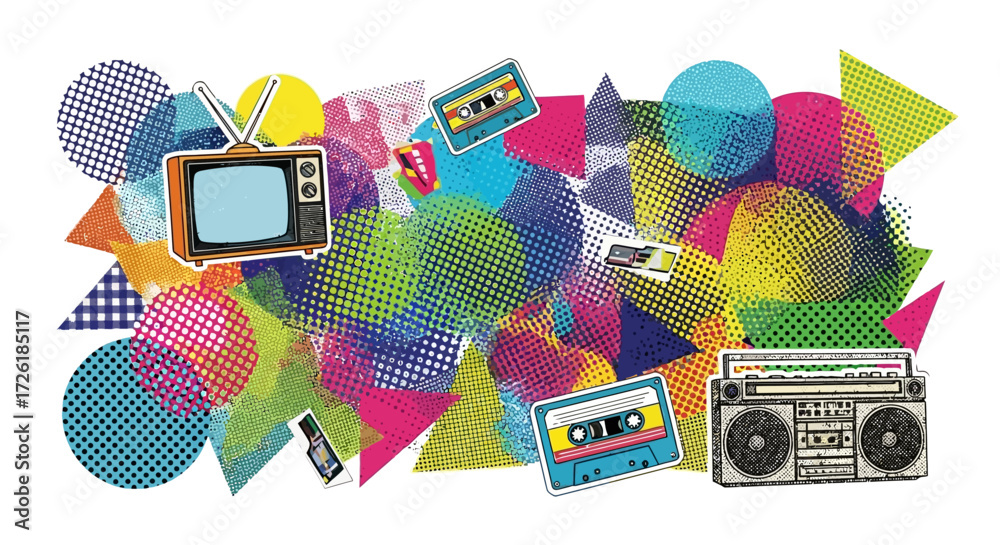 Retro 80s and 90s Pop Art Elements Collage #1726185117