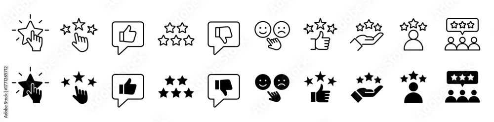 Review icon set. Containing feedback, rating, satisfaction, like icons. Vector illustration. #1771265712