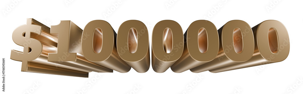 Rich, Jackpot, Golden one million dollars symbol representing wealth and financial success. 3d illustration #1766545664
