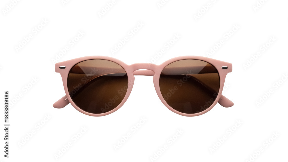 Round pink sunglasses isolated PNG, retro style eyewear with brown lenses for sun protection and fashion accessory on transparent background #1833809186