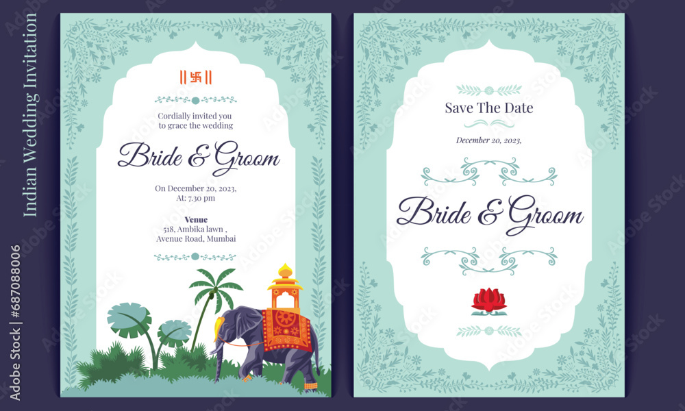 Royal indian wedding card design, invitation template #687088006