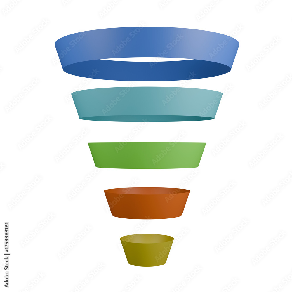 Sales funnel diagram showing marketing element conversion process data, presentation transparent background isolated 3D render #1759363161