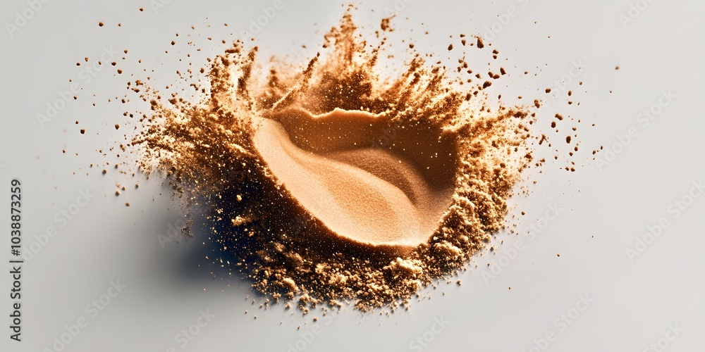 Sand, beautifully scattered on a gray background, photo shoot, #1038873259