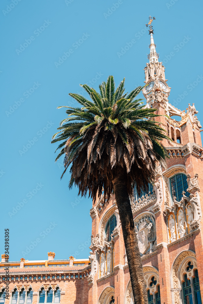 Sant Pau Hospital and palm tree in Barcelona, Spain #1934398305