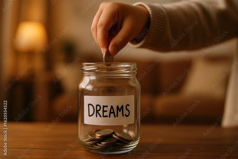 Saving for Dreams – Hand Putting Coin in Jar #1620554522