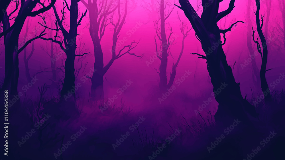 Scary dark forest at night. Halloween background with spooky woods. Vector cartoon illustration of creepy deep forest landscape with tree trunks, grass and stones #1104454358