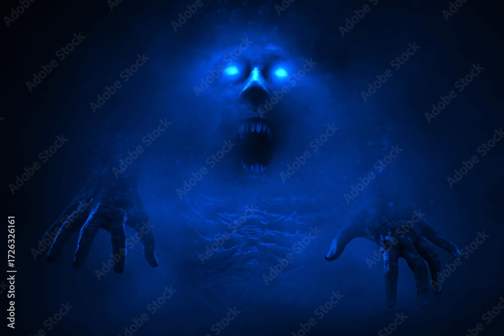 Scary ghost on dark background with smoke mist fog, Hallowen theme #1726326161