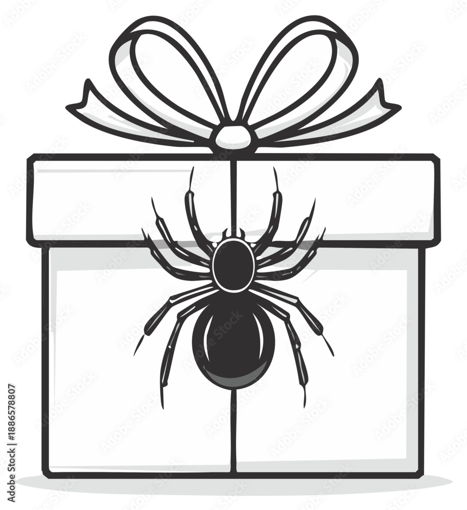 Scary Spider Hanging from a Gift Box Tied with a Bow #1886578807
