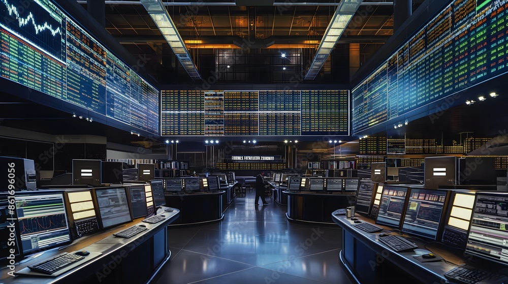 11. Sculpt an AI-driven financial trading floor, with algorithms analyzing market data and executing transactions with speed and accuracy. #861696056