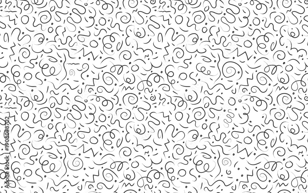 Seamless Abstract Hand Drawn Doodle Pattern Black White Scribble Swirl Zigzag Minimalist Background Art #1908058702