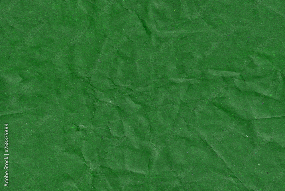 Seamless crumpled dark green kraft paper texture. Empty textured sheet. #758375994