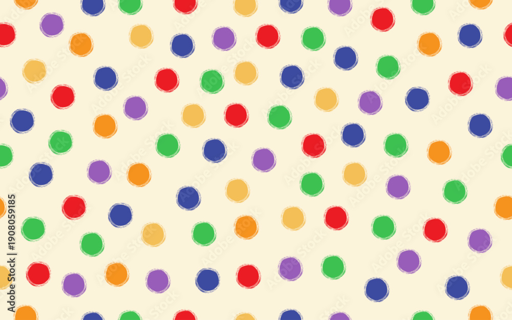 Seamless Hand Drawn Colorful Polka Dot Pattern Playful Kids Background Texture Wallpaper Vector Arts #1908059185