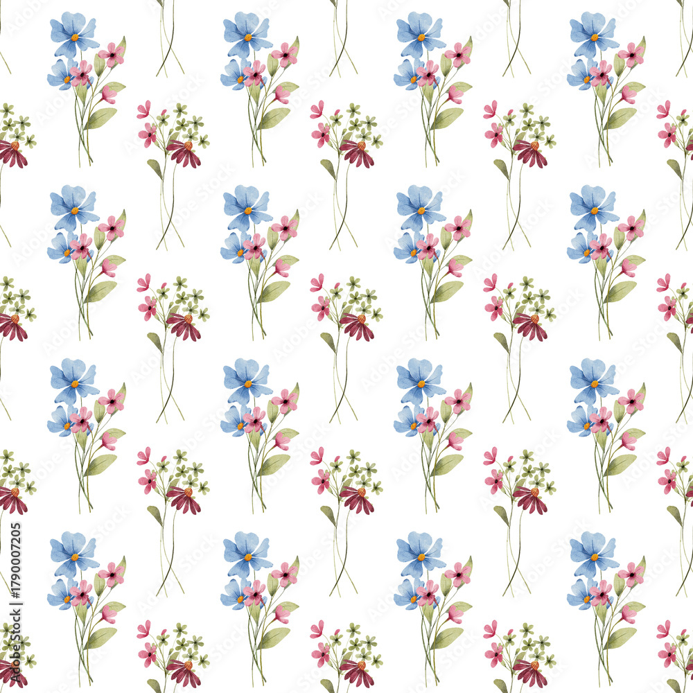 Seamless pattern, floral background with watercolor flower bouquets. Repeat fabric wallpaper print texture. Perfectly for backdrop, wrapped paper. #1790007205