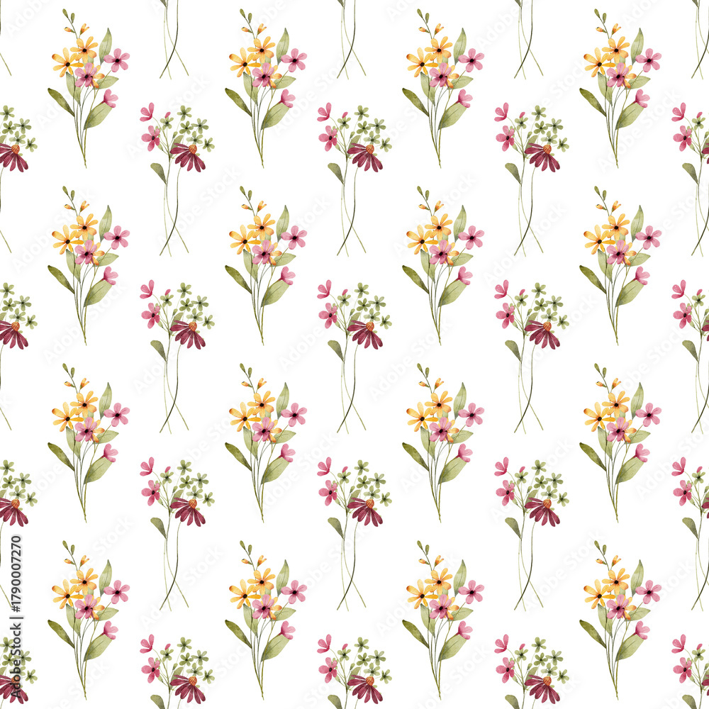 Seamless pattern, floral background with watercolor flower bouquets. Repeat fabric wallpaper print texture. Perfectly for backdrop, wrapped paper. #1790007270