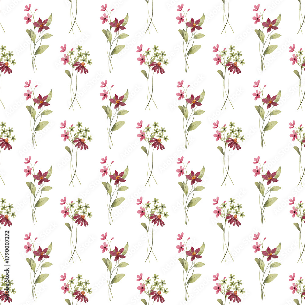 Seamless pattern, floral background with watercolor flower bouquets. Repeat fabric wallpaper print texture. Perfectly for backdrop, wrapped paper. #1790007272