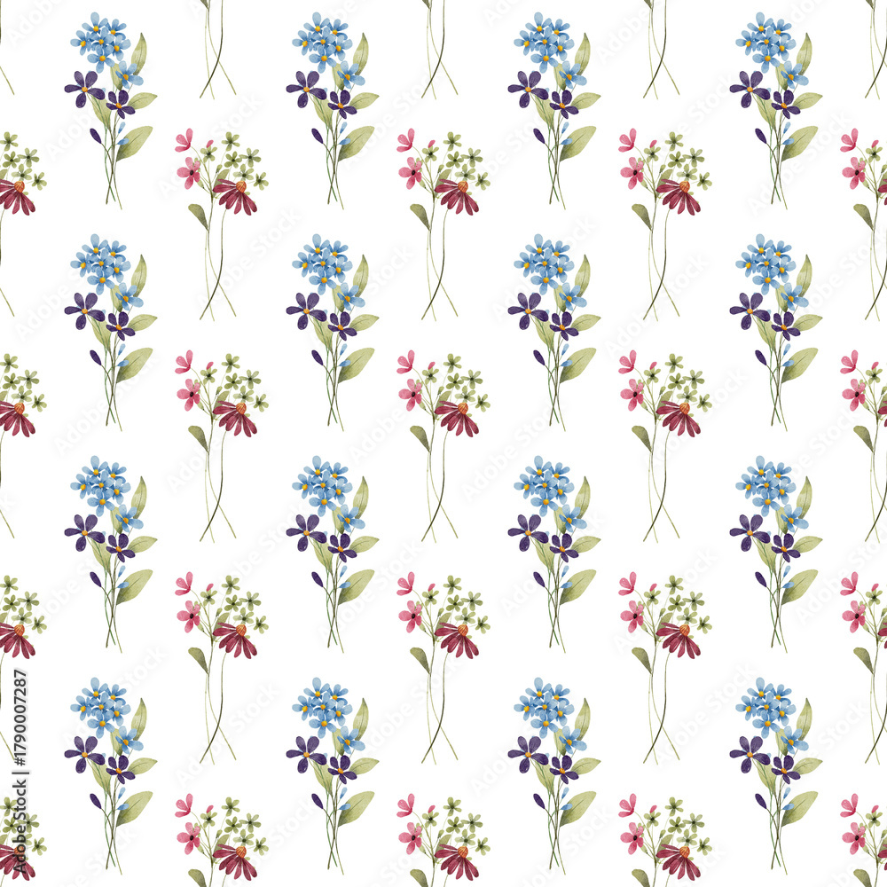 Seamless pattern, floral background with watercolor flower bouquets. Repeat fabric wallpaper print texture. Perfectly for backdrop, wrapped paper. #1790007287
