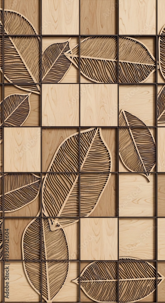 Seamless Pattern of Stylized Leaves on a Tiled Background. #1936912604
