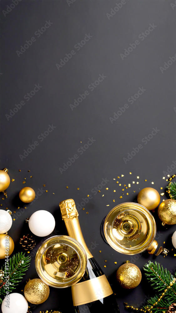 Sektgläser und Dekoration isoliert vor Hintergrund #1744462382