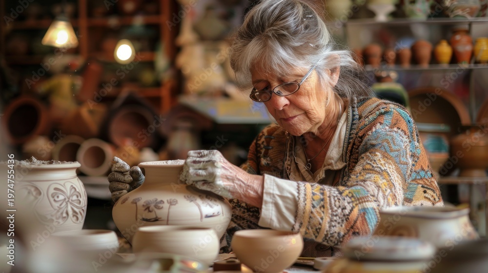 Senior woman pottery craftsmanship #1974755436