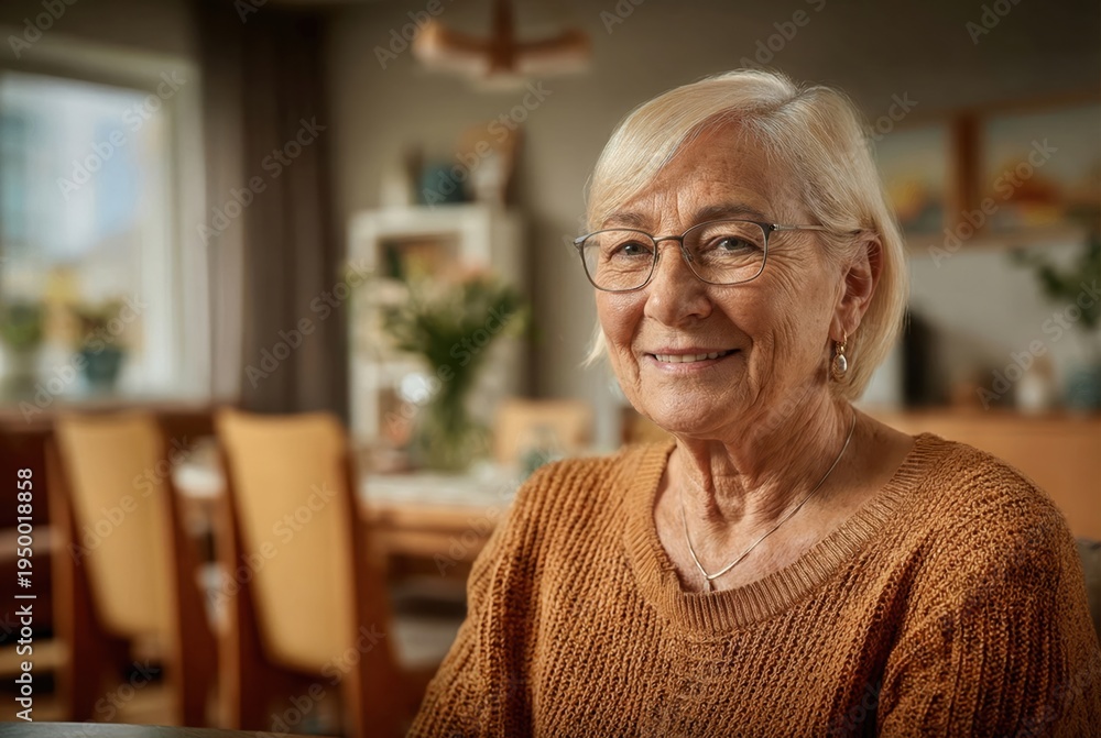 Senior woman smiling and looking at the camera in a domestic setting #1950018858