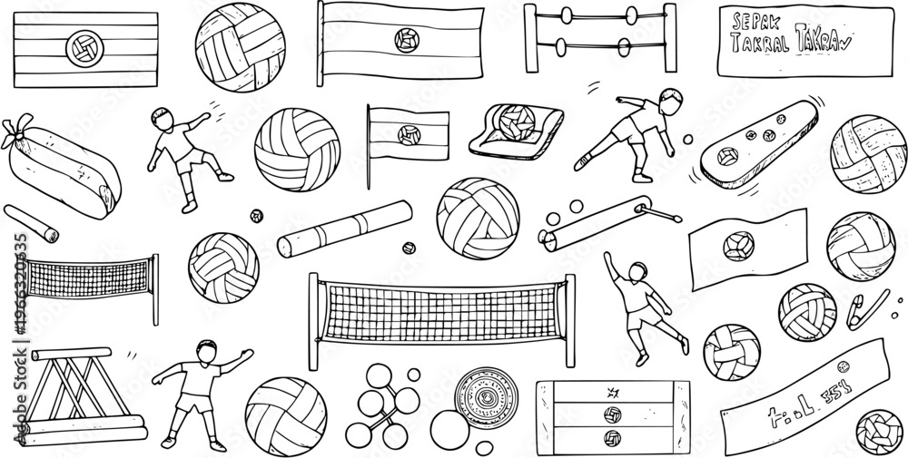 Sepak Takraw Doodle Set: Traditional Southeast Asian Sport Illustration #1966320635