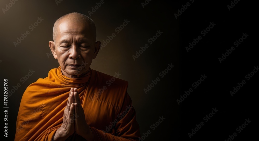 Serene Buddhist Monk in Meditation with Hands in Prayer Position #1781205705