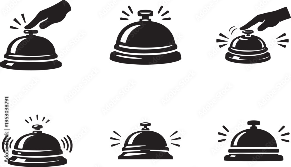 Service bell icon set for hotel reception, restaurant desk, customer call symbol vector illustration. #1953038791
