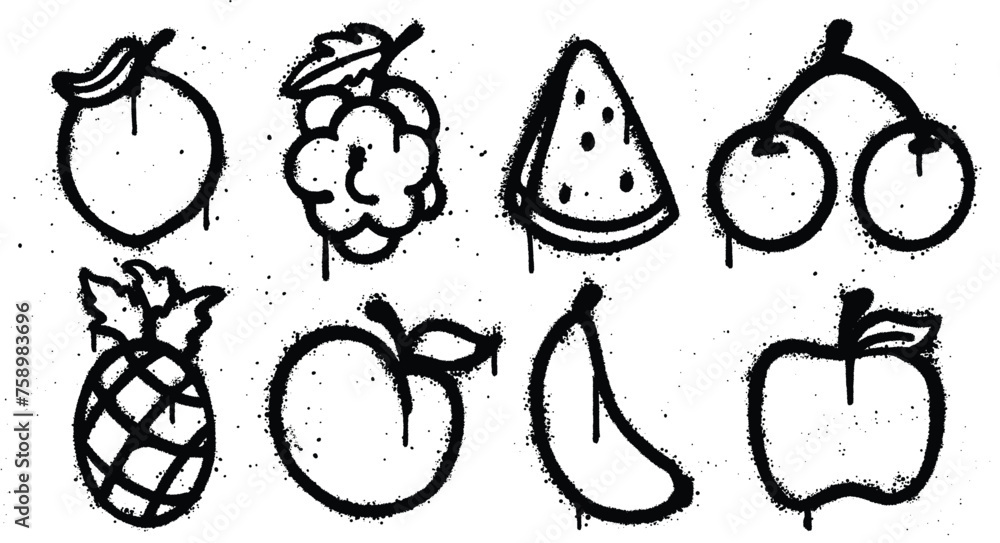 Set of graffiti spray paint Fruit elements Illustration #758983696
