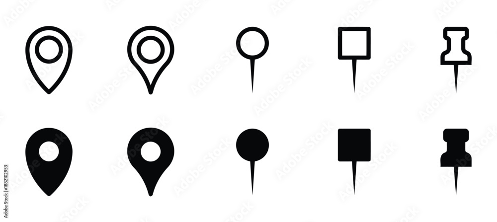 Set of location icons in vector map pointer and gps navigation as pin marker and point sign on map with position symbol for navigation and direction #1882102953
