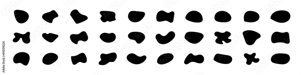 Set of random liquid shapes vector isolated on white background. Blob, blotch or inkblot shapes. Abstract shadows or black drops. #842104226