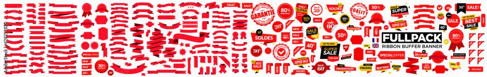 Set of Red Ribbons, Banners, badges, Labels #628253820
