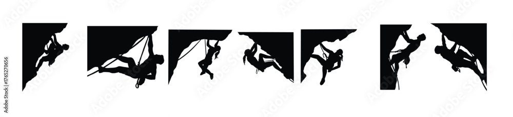 set of rock climbers silhouette vector illustration #1765270656