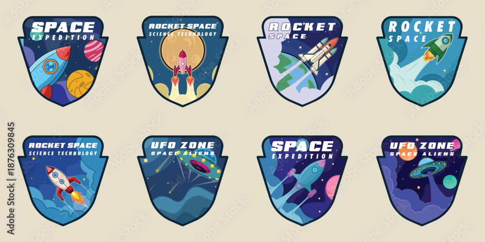 set of rocket space emblem logo vector illustration template icon graphic design . bundle collection of various Galaxy Exploration Shields and Cosmic Mission sign or symbol for technology astrology #1876309845