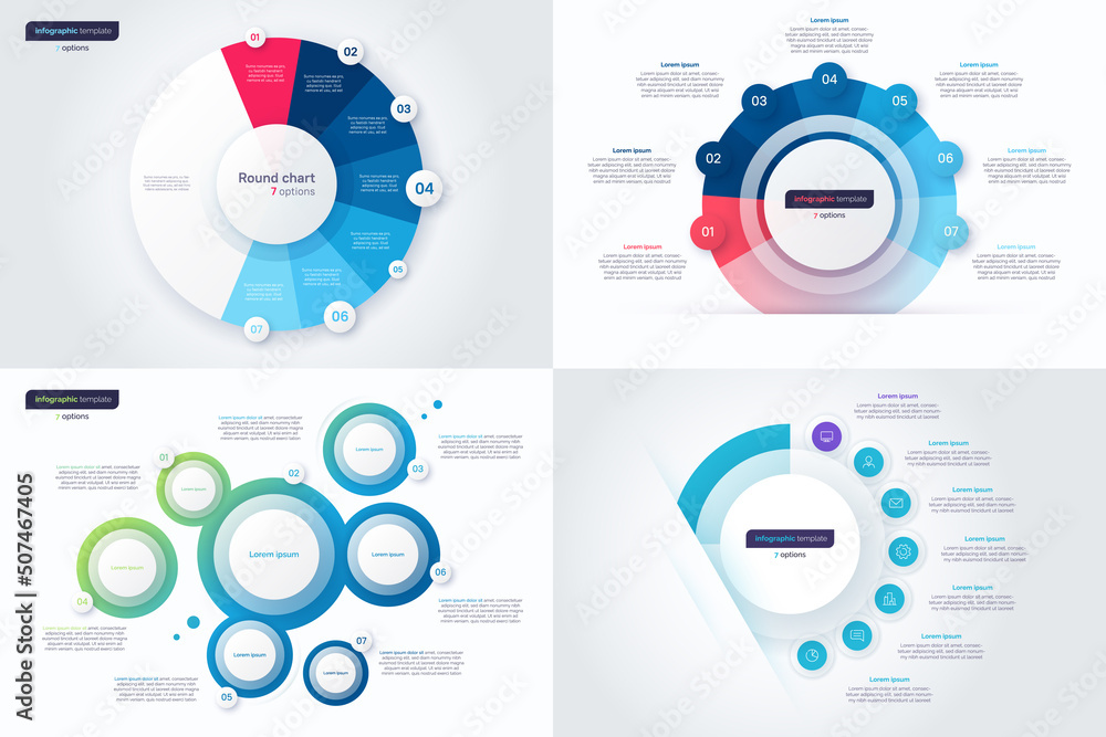Set of seven option circle infographic design templates. Vector illustration #507467405