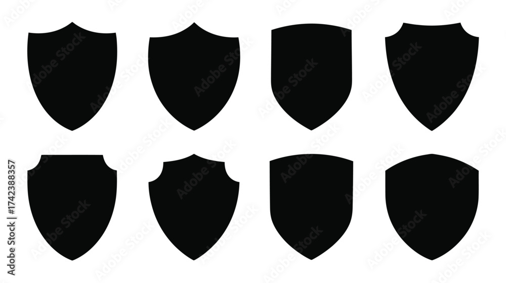 Set of various black shield vector illustrations scalable eps icon for declarative graphics design silhouette White background #1742388357