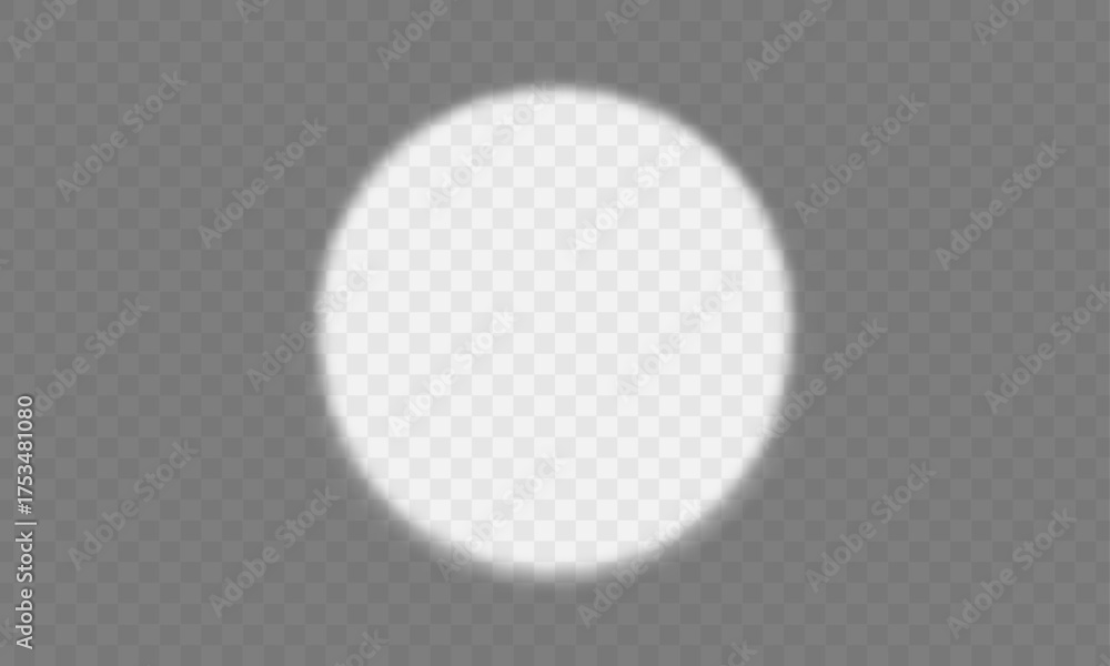 Shadow overlay of flashlight or spotlight frame. Transparent overlay shadow effect from circle spotlight beam. Realistic light effect of shadows on transparent background. Vector. #1753481080