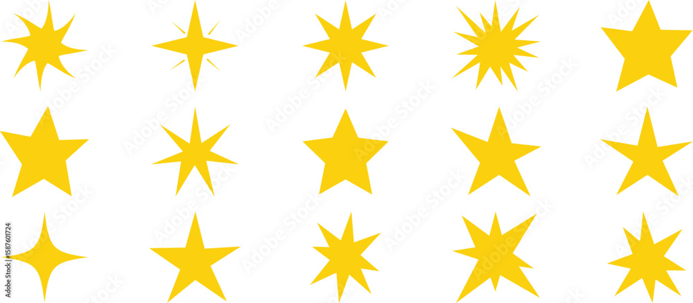 Shine star sparkle vector with yellow star icon set .Decorative twinkle and bursts forms, abstract shining flash symbols shapes vector set. eps 10 #1587601724