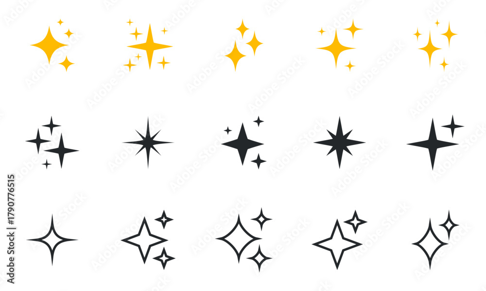 Shining stars icon set. Sparkle stars icons. Twinkle stars collection. Effect shine, glitter, twinkling and clean. Vector illustration. #1790776515
