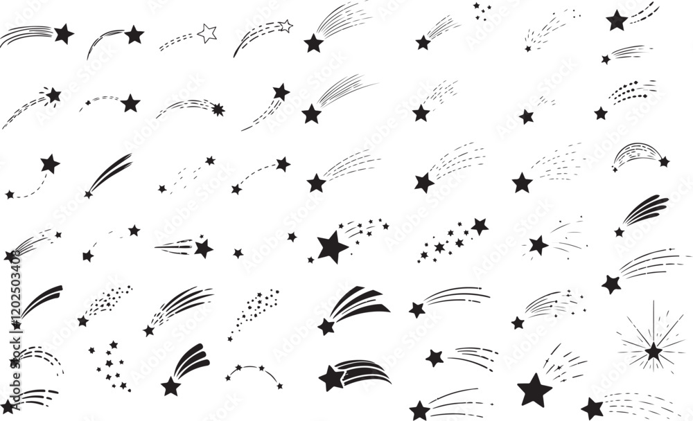 Shooting Star Silhouettes Collection, Black Vector Celestial Designs for Fantasy and Space Themes #1202503408