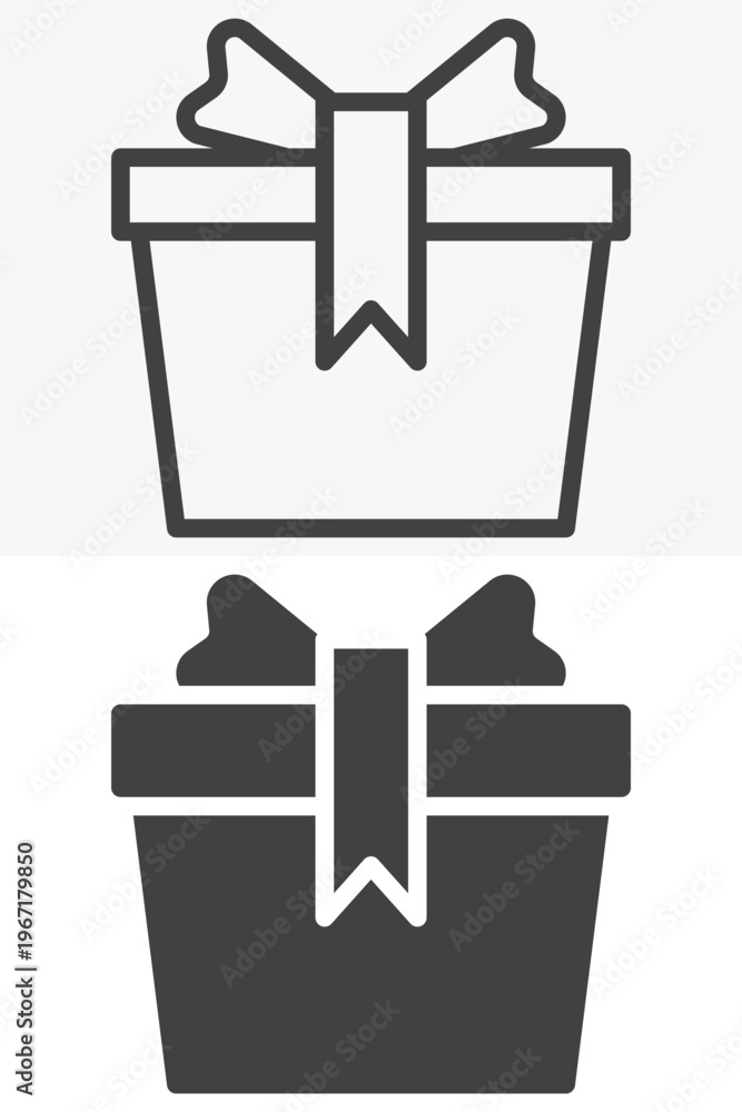 Shopping gift box with ribbon bow icon in line and solid styles. Outline and solid icon, editable stroke vector sign symbol. Shopping gift box icon for retail. #1967179850