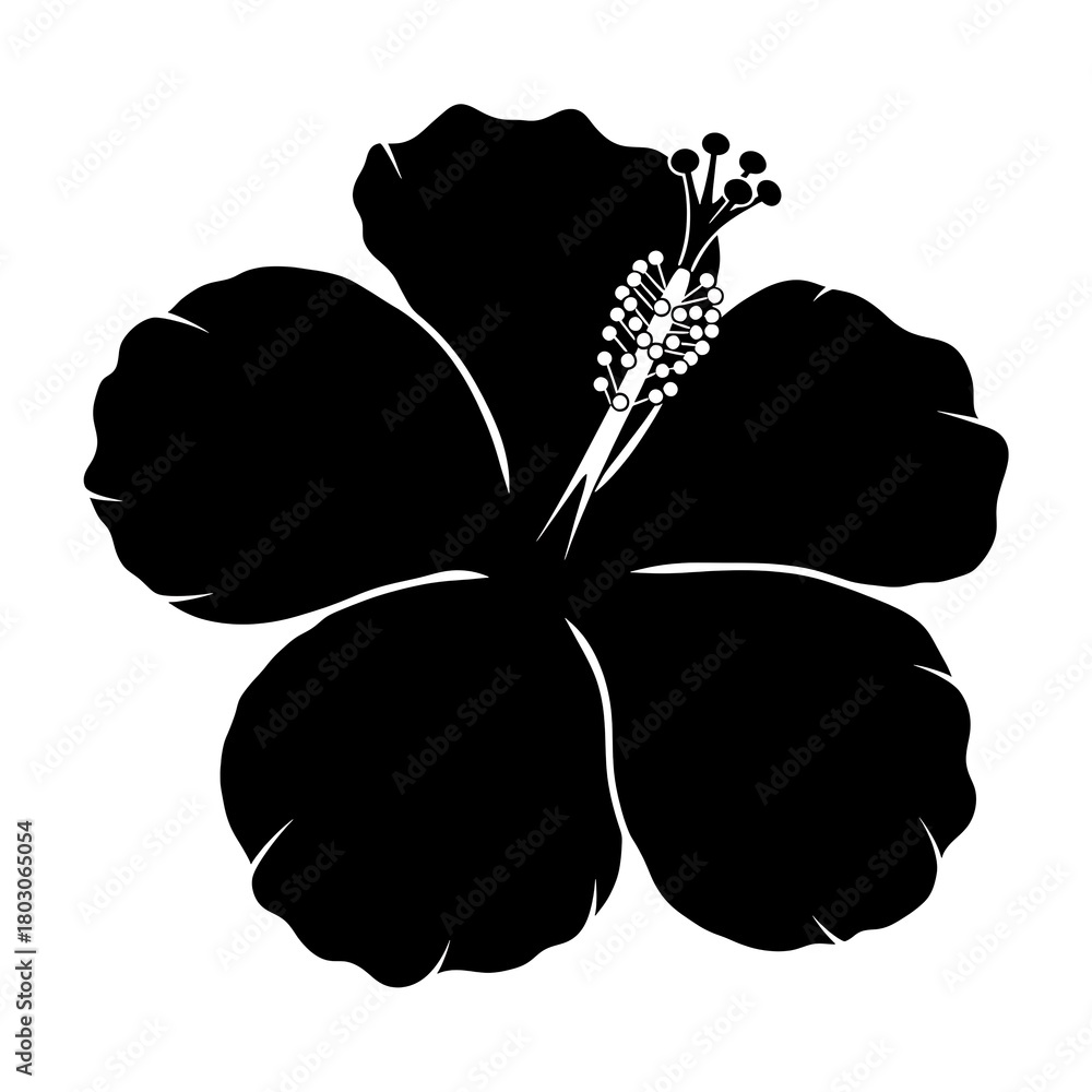 Silhouette of a black hibiscus flower with detailed stamens and petals isolated on white background #1803065054