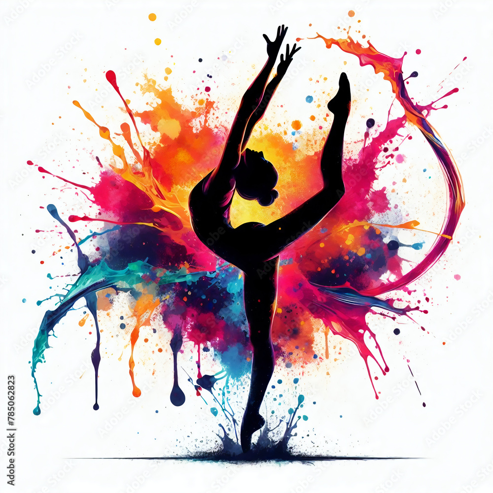 Silhouette of gymnastic splashing colorful paint on white background #785062823