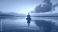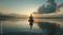 Silhouetted yogi immersed in tranquil sunrise meditation amidst the idyllic sandy shores and azure waters of Bali #789434498