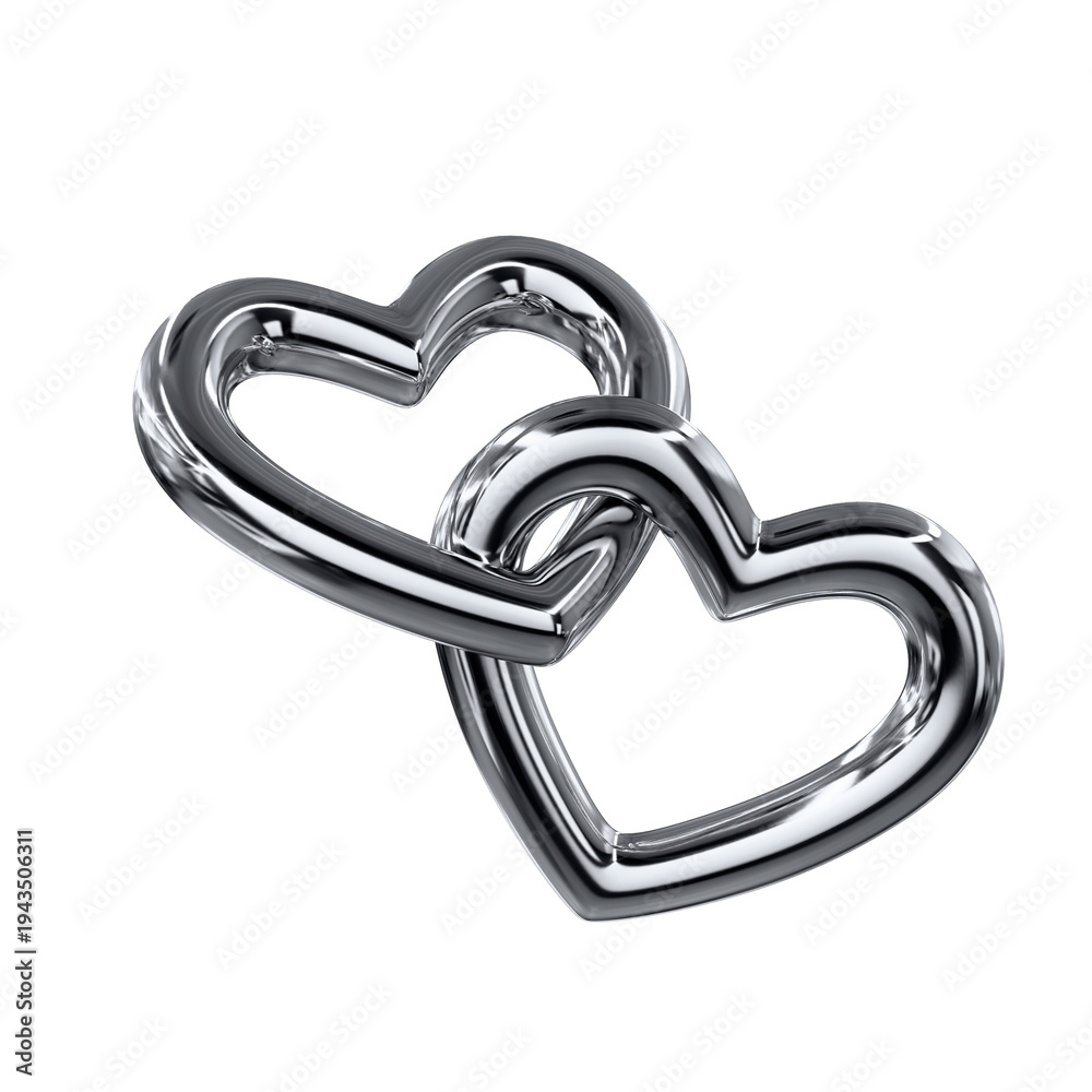 Silver Chrome Metallic 3D Linked Double Heart with Transparent Background, Glossy Y2K Love Icon #1943506311