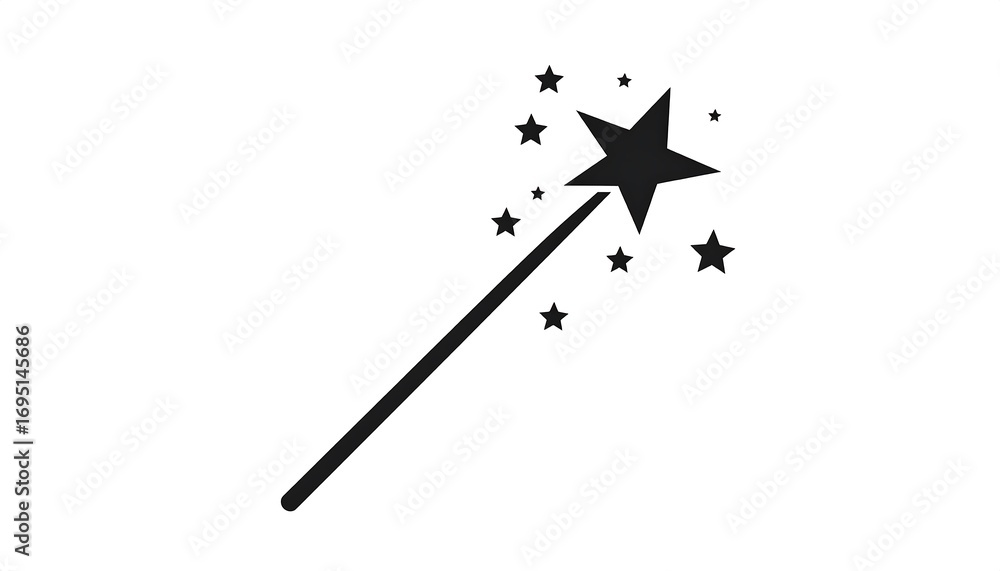 Simple black magic wand icon with stars #1695145686