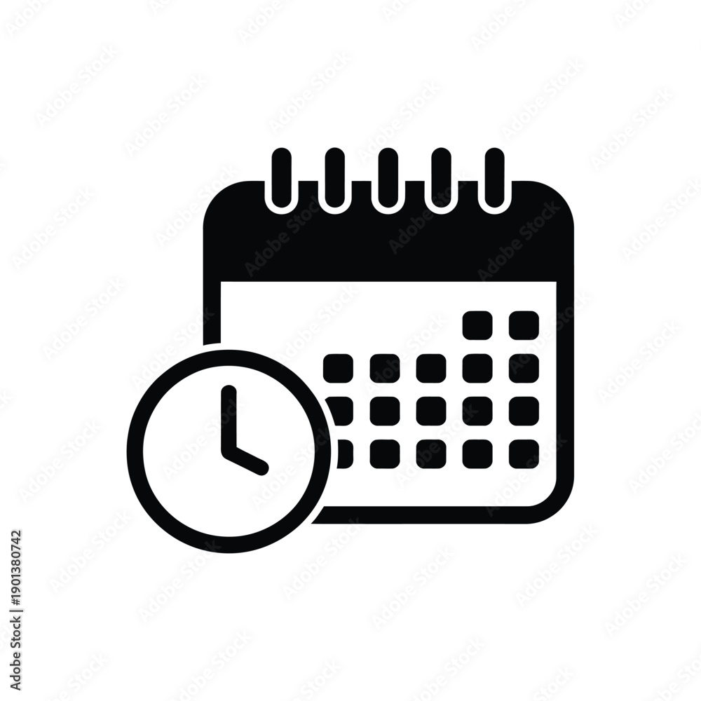 Simple calendar icon with a clock representing scheduling or appointments #1901380742