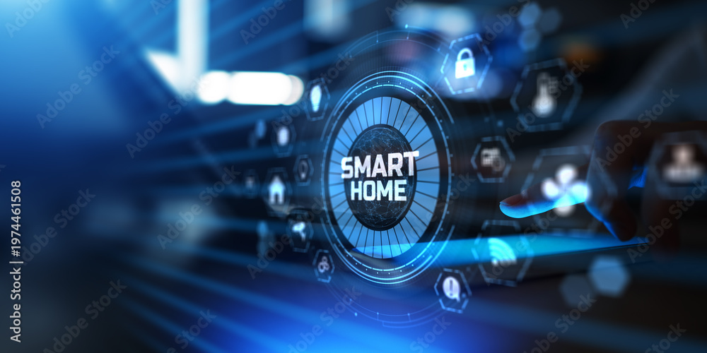 Smart Home Automation and Security System Interface Illustrated on a Virtual Screen. #1974461508